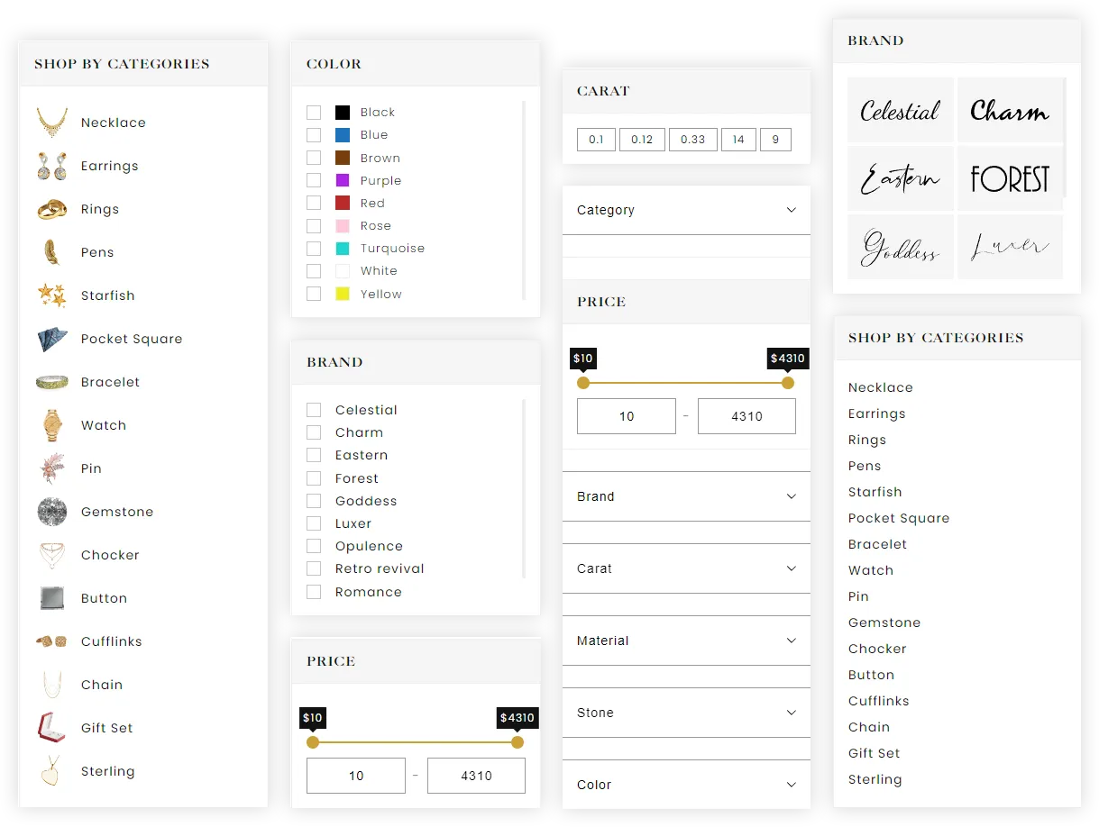 Filter attributes different layouts and types